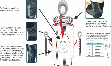 • Colier interior deasupra genunchiului, cu silicon, pentru prevenirea